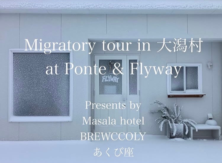 Flywayのリノベーション・設計をお願いしたあくび建築事務所さんとそのバディたちが、大潟村へやってくる! 「Migratory」とは「渡りの」という意味。2025年にオープンした村の2つのお店を、渡り鳥のようにツアーします。